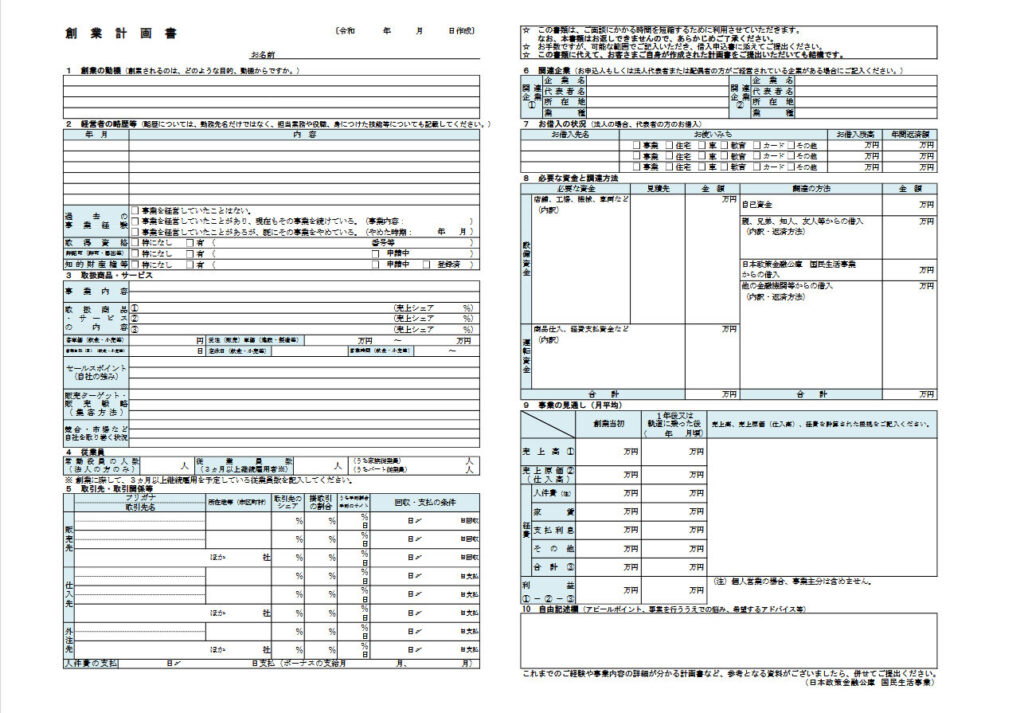 【日本政策金融公庫の事業計画書】
