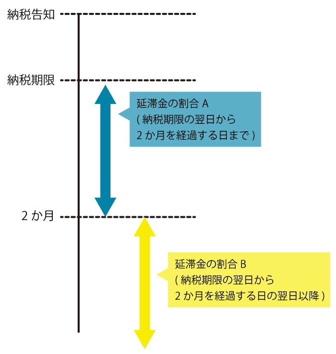 延滞金の金額ですが、支払い期限から2カ月までと2カ月以降で変わってきます。